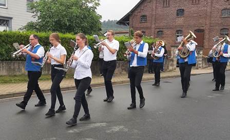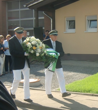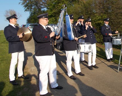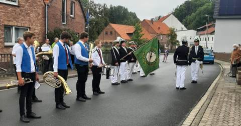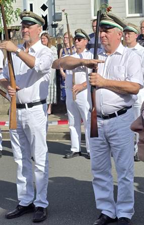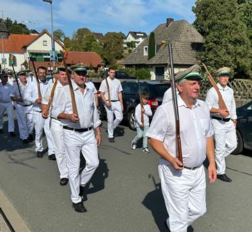 Kurz darauf treten die Kapelle und die Schützenkameraden an,