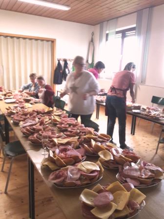 Jetzt geht's zum gemütlichen Teil in die Gemeindehalle...