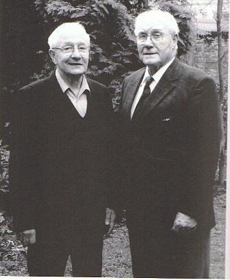 Die Zwillingsbrüder 2006 und ca. 1930 vor ihrem Geburtshaus in Beller.