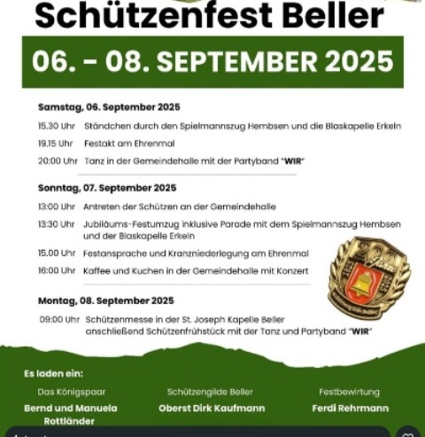 weiterhin viel Erfolg und gutes Gelingen bei den Dorf- und Schützenfesten.